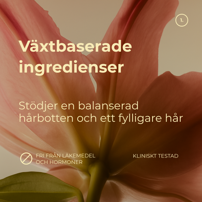 | Växtbaserat Baicapil®-komplex – ökar cellaktiviteten i hårsäckarna, minskar håravfall och stimulerar ny hårväxt. | ![]() | |
